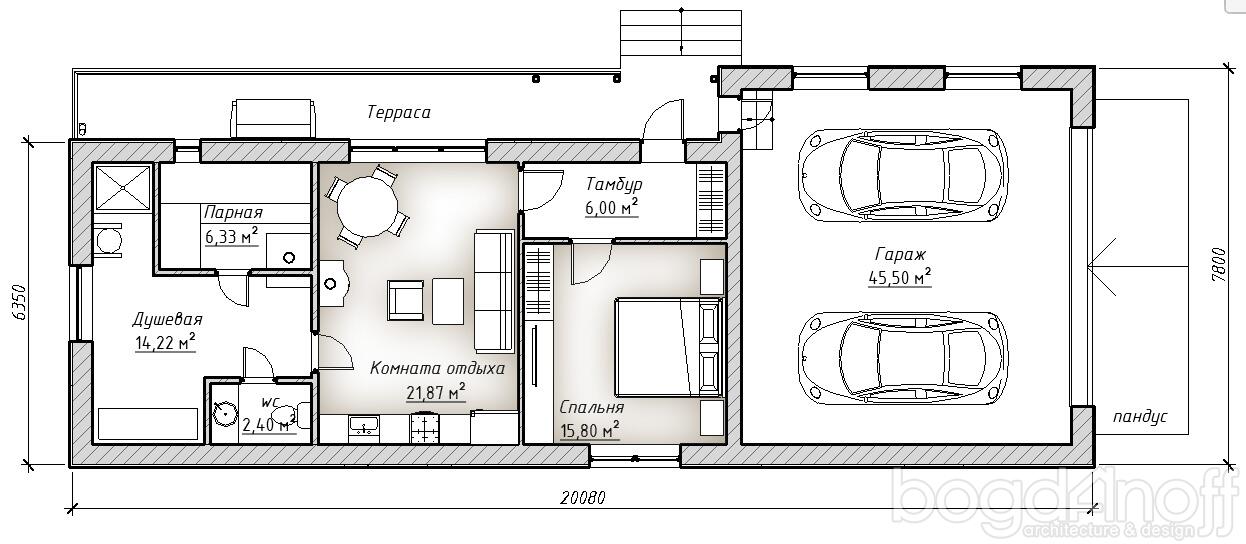 - Б-44 Банный комплекс с гаражом р 20.08 * 6.35 м.