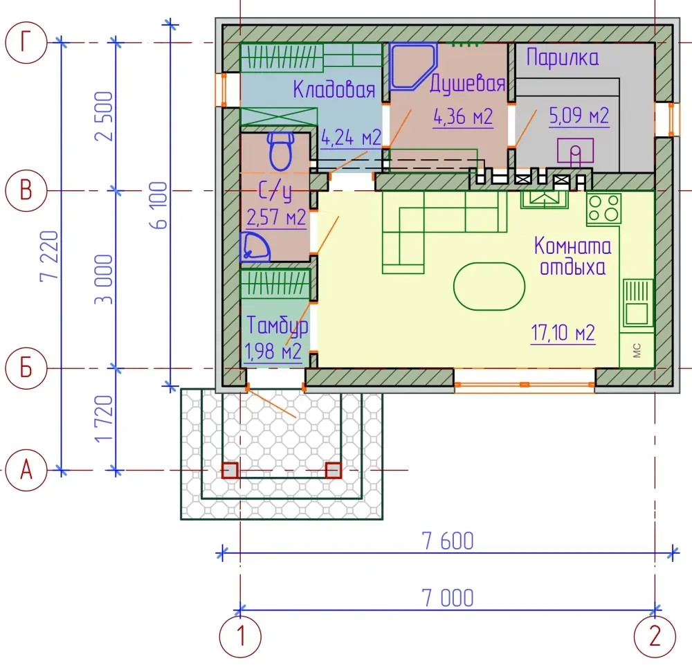 - Б-44 .Банный комплекс . 7.6*6.10 метров