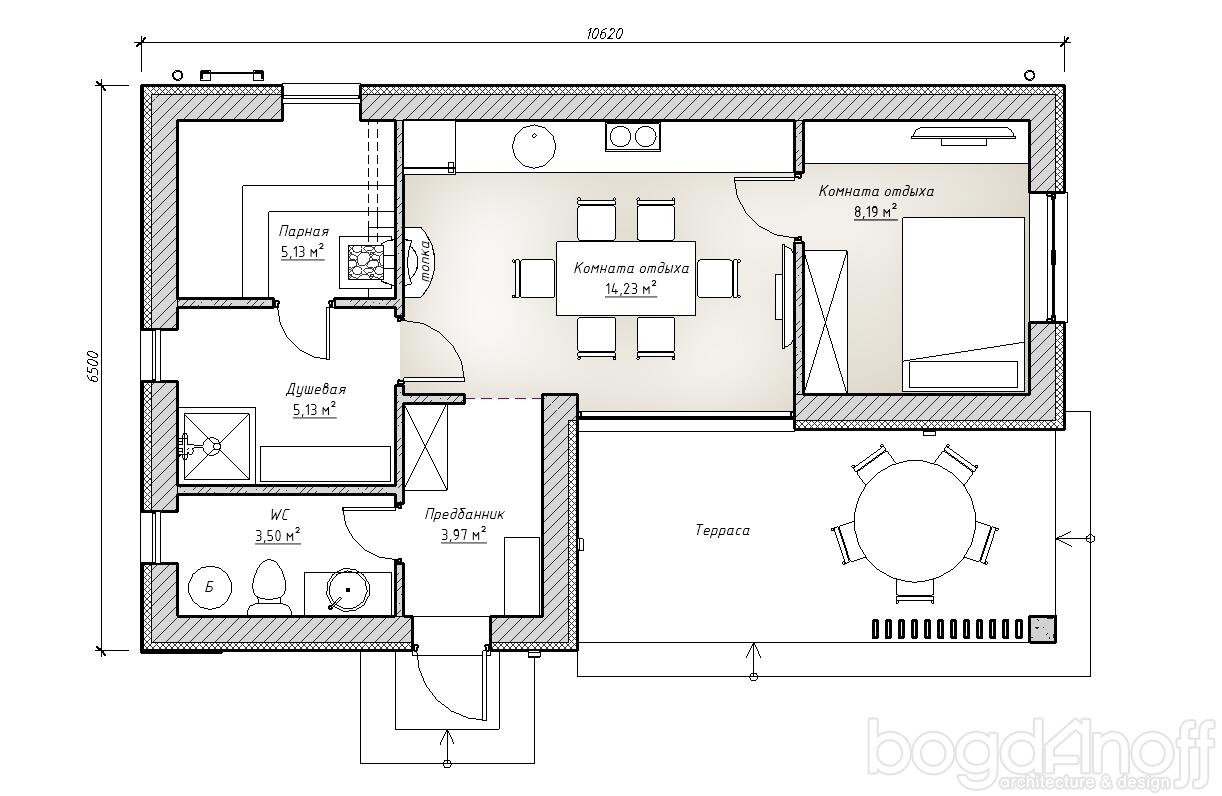 - Б- 04 Комфортная баня с комнатой отдыха и спальней 10.6*6.5 метров