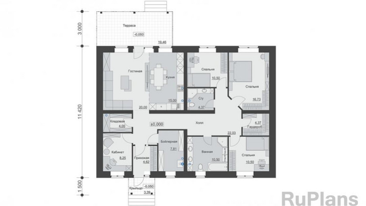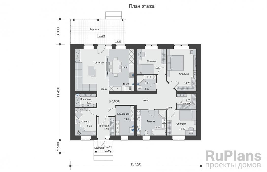 - РМ-376 Дом с террасой и тремя спальнями 15,9 x 15,5 м