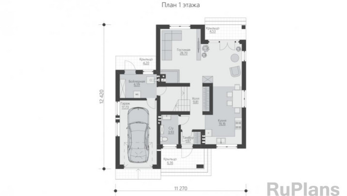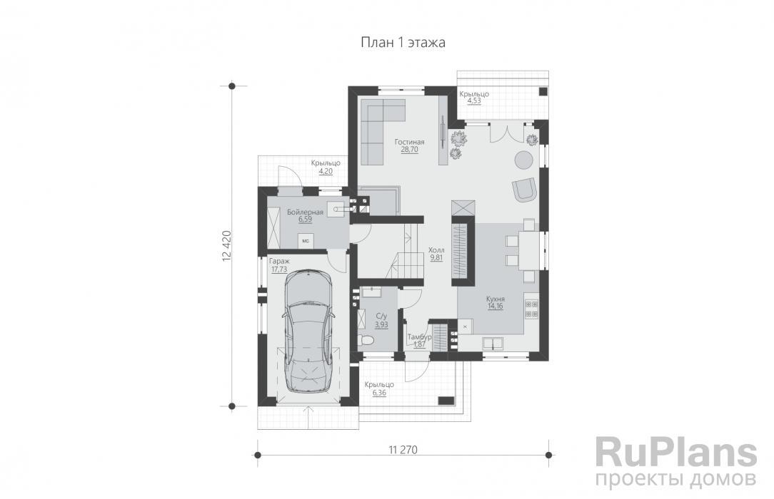 - РН-322 Дом с гаражом и тремя спальнями 11,3 x 12,4 м.