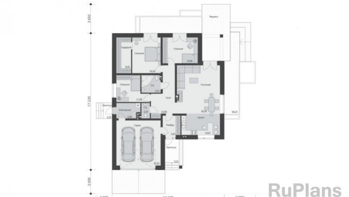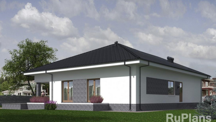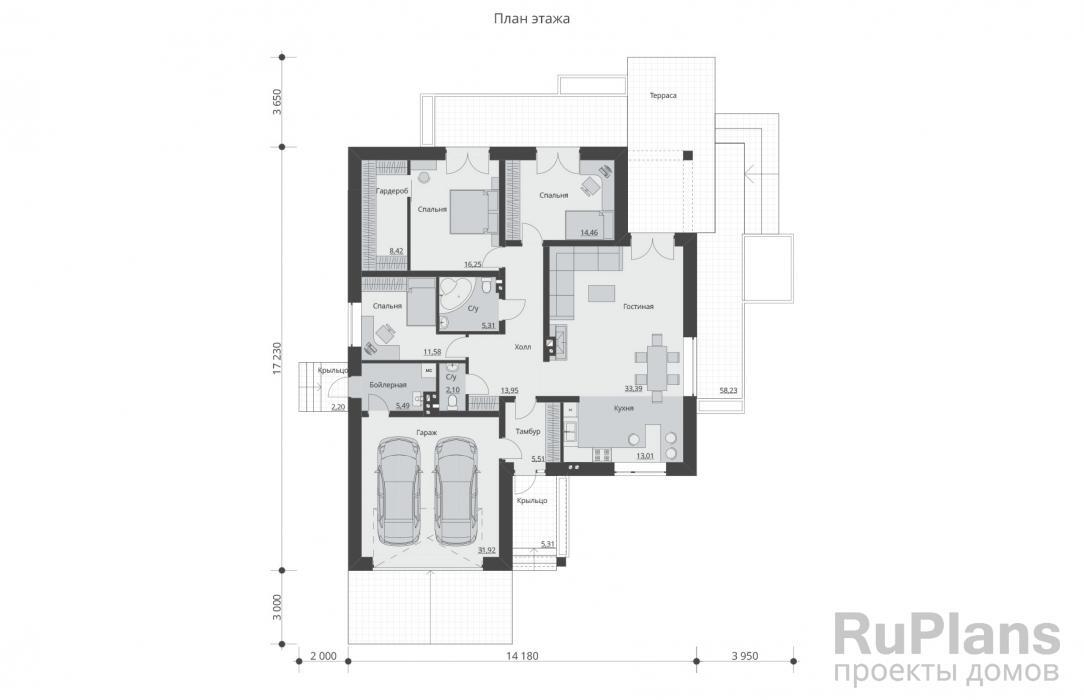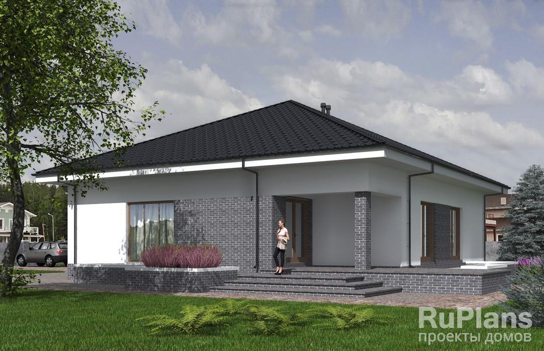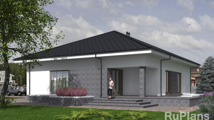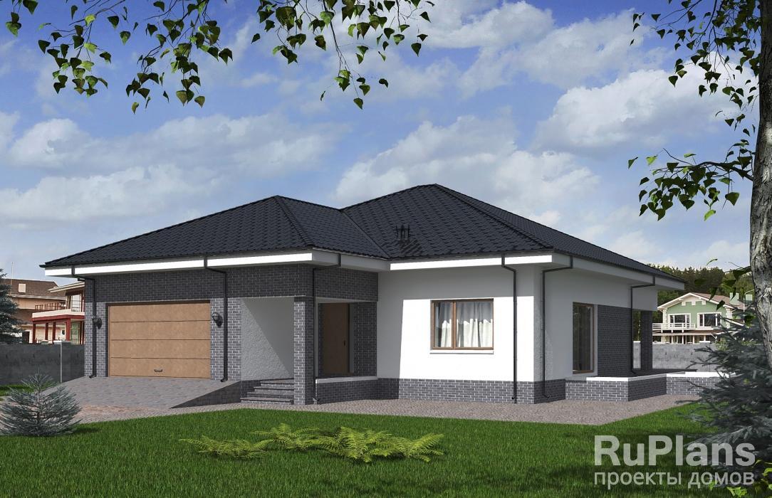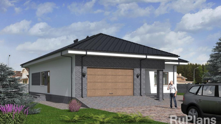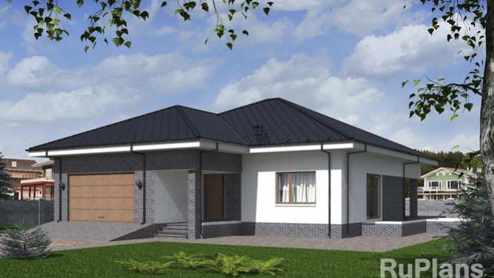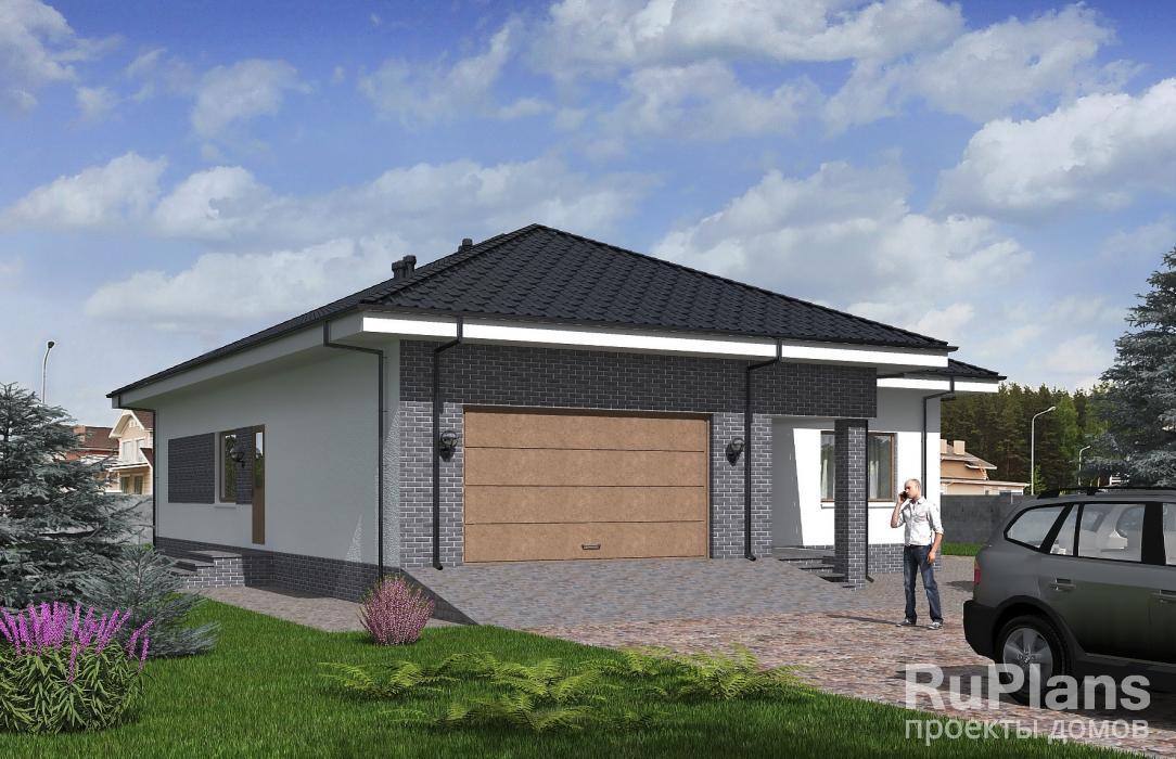 - АКЦИЯ СБ-211 Одноэтажный дом с террасой и гаражом 20,1 x 23,9 м