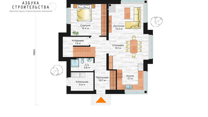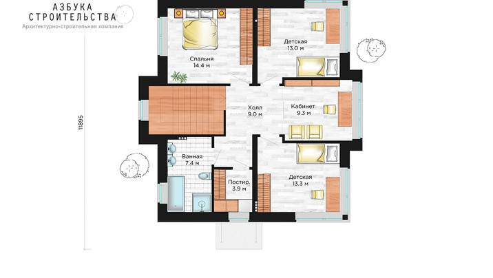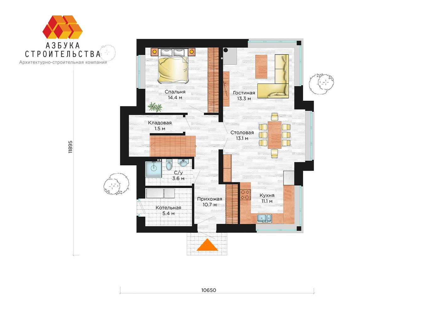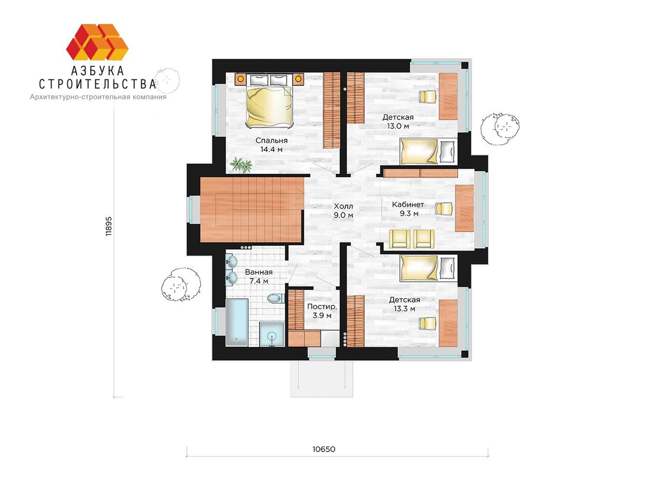 - ВП-77.Двухэтажный дом с пятью комнатами 12 м x 10,7 м