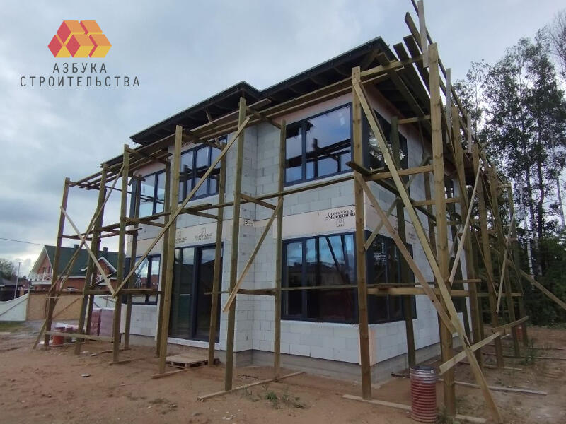В стоимость строительства входит: АР (архитектурный проект) КР (фундамент, стены, крыша, фундамент (геология) , ввод и разводка канализации, ввод (гильзы) водопровода ,электричества, наружные стены из газосиликатного блока (300мм) с утеплением 50 мм, внутренние перегородки (120мм) крыша метало- черепица толщина металла 0,5 мм , бетонные (черновые полы) 100 мм ,межэтажное перекрытие железобетонные, балки перекрытия второго этажа 200 мм с утеплением 200 мм.