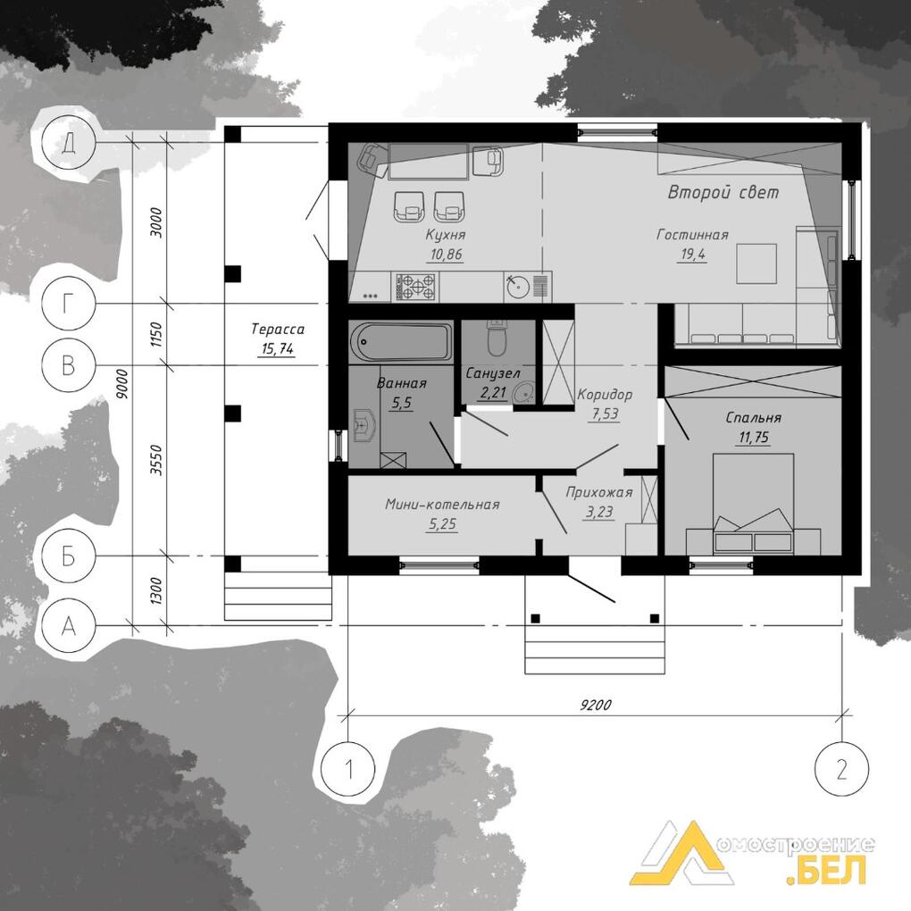 На сегодняшний день идет строительство пяти таких домов по всей Белоруссии из них два дома по Минскому району . В одном из проектов по желанию клиента вместо одной комнаты и гостиной мы заменили на две жилых комнаты и кухню при этом стоимость не изменилась.