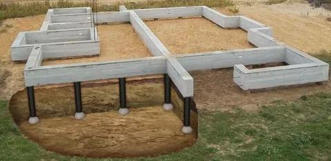 Свайно -ростверковый фундамент считается наиболее востребован и популярен для Беларуси .Этот тип фундамента представляет собой армированные бетонные сваи заглубляемые в грунт от 1 до 4 метров и диаметром от 200-300 мм. .Свайно-ростверковый фундамент обладает высокой несущей способностью .Этот тип фундамента не подойдет для строительства дома с монолитным подвалом или на участке с большим уклоном.