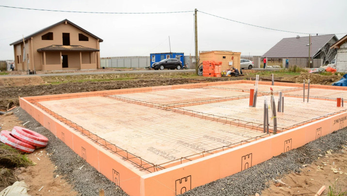 Она позволяет снизить теплопотери через фундамент и обеспечивает дополнительную звукоизоляцию. Кроме того, такой фундамент может устойчиво выдерживать даже высокую грунтовую воду и не требует дополнительной гидроизоляции.