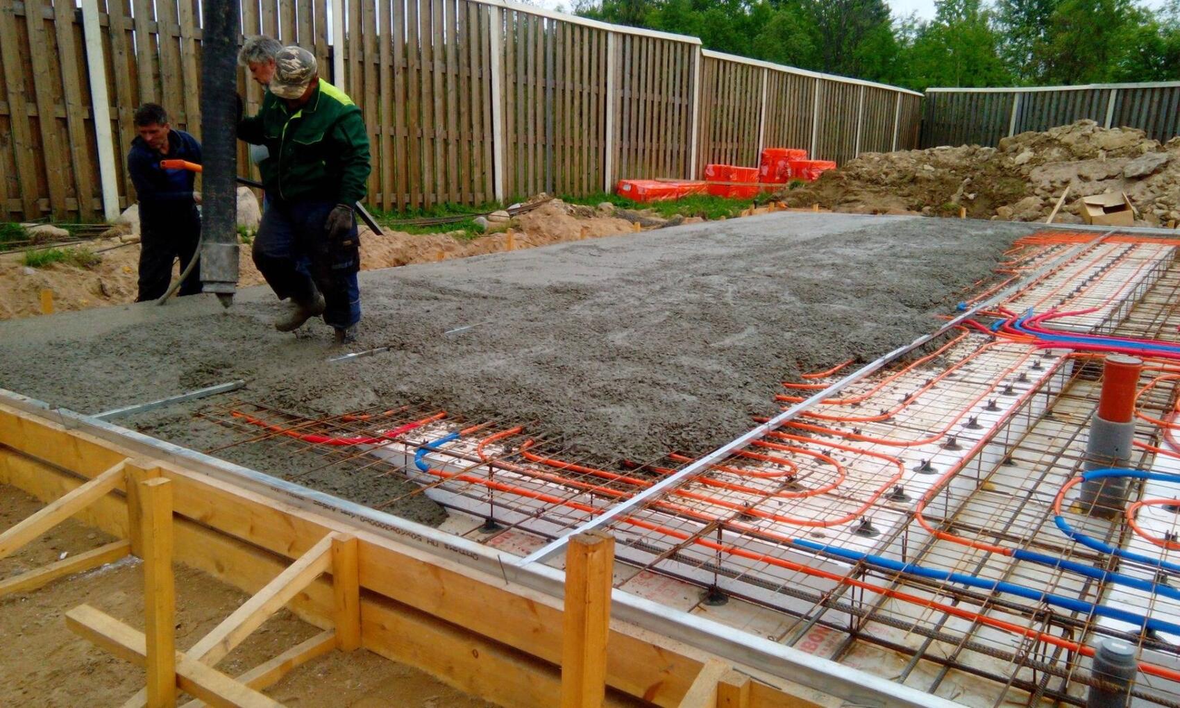 Стоимость строительства от 390 бел рублей. В стоимость строительства входит : подготовка основания, монтаж утепления, вязка каркасов арматуры , монтаж опалубки, заливка бетона.