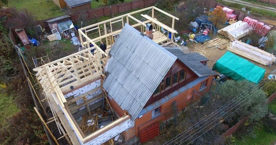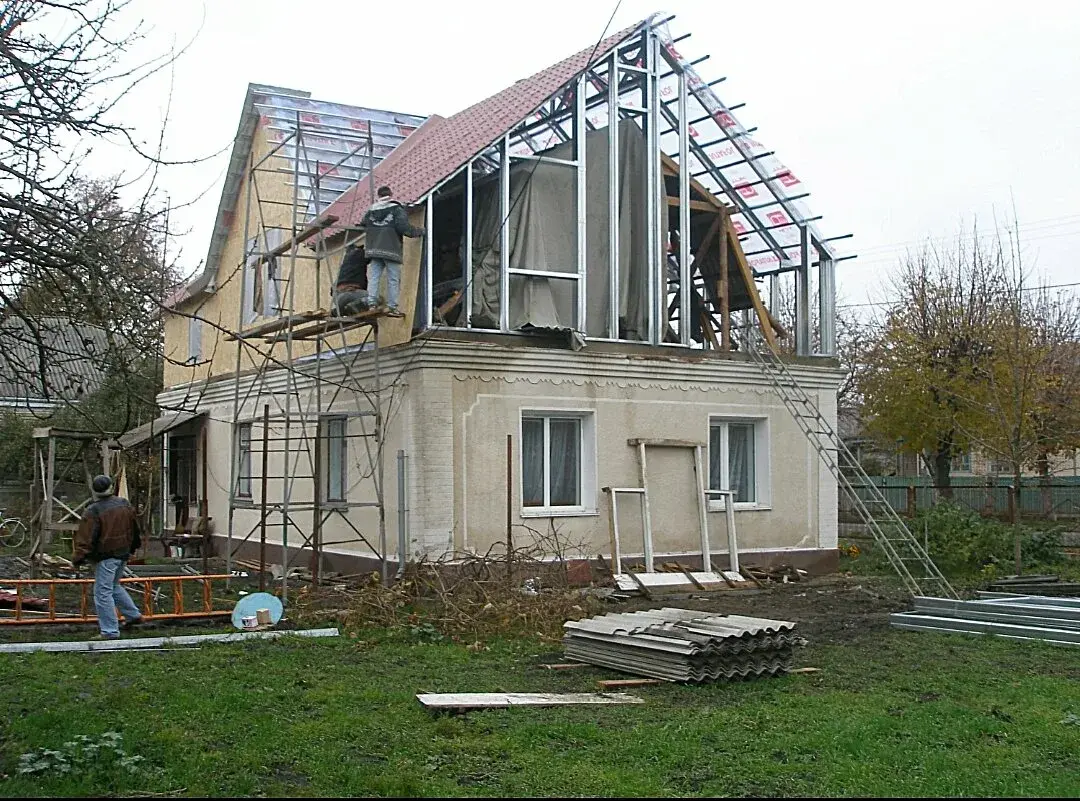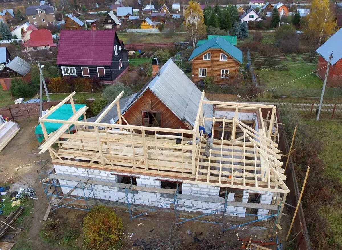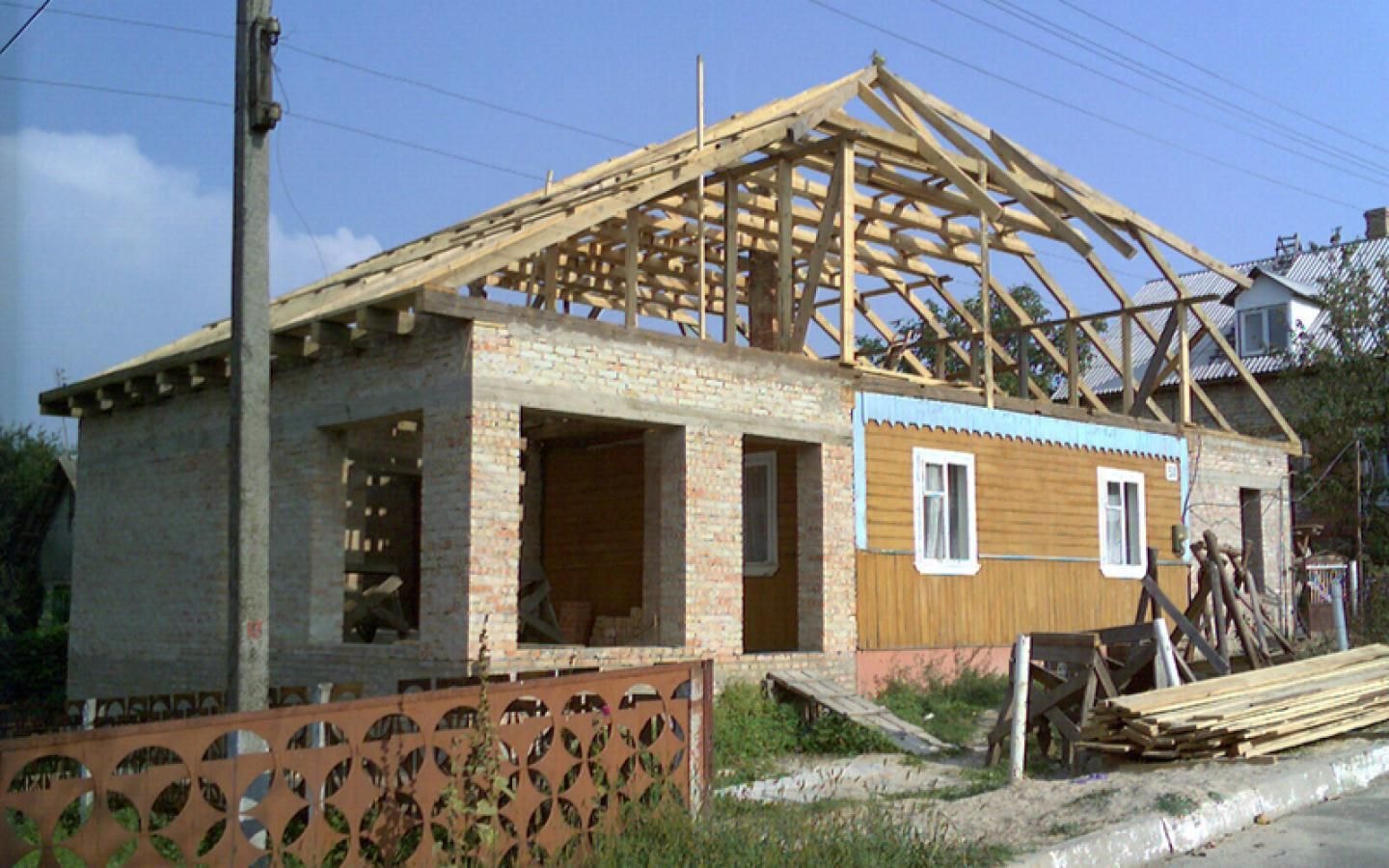 Пристройка и надстройка здания из блоков, кирпича, деревянные конструкции.