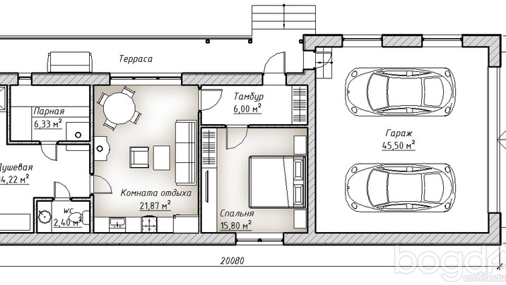 - Б-44 Банный комплекс с гаражом р 20.08 * 6.35 м.