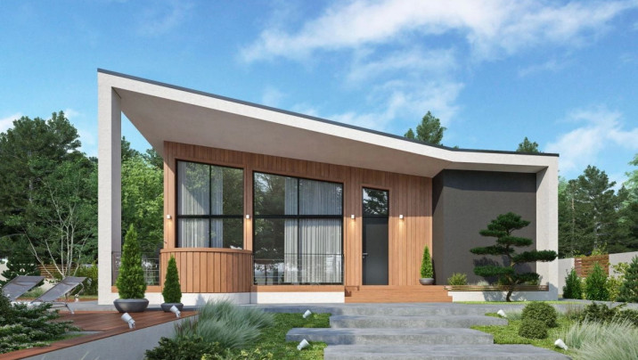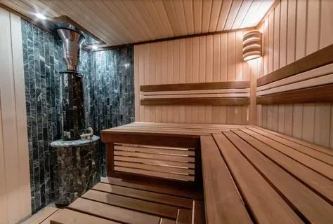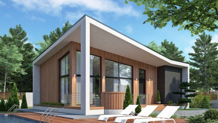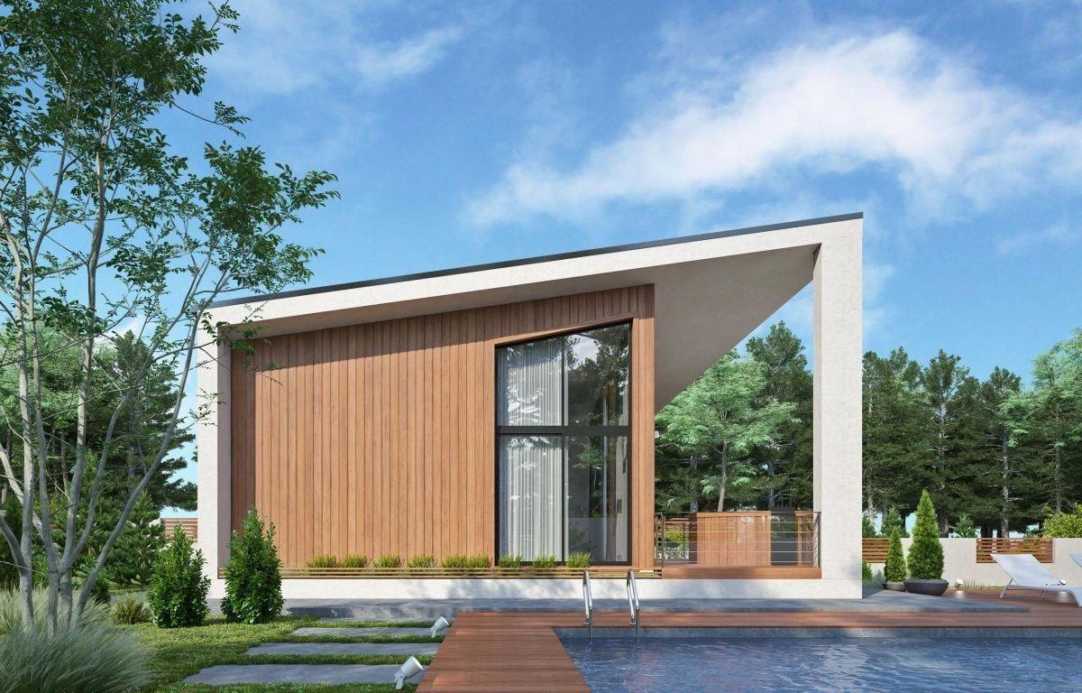 Новинка 2025 года. Строительство банного комплекса с уникальной архитектурой и террасой в современном стиле, которая привлекает внимание и гармонично вписывается в современный ландшафт.
