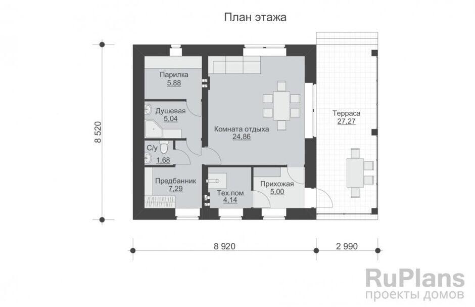- Б-50. Банный комплекс 11,05*7,40 метров