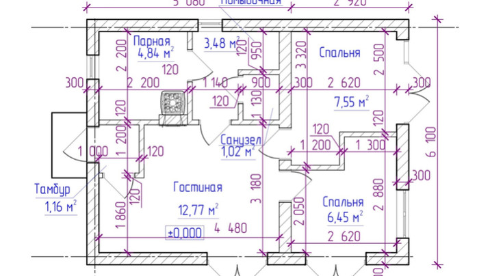 - Наружные стены газосиликатные блоки 300 мм, перегородки 120 мм