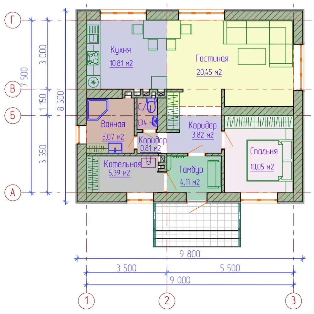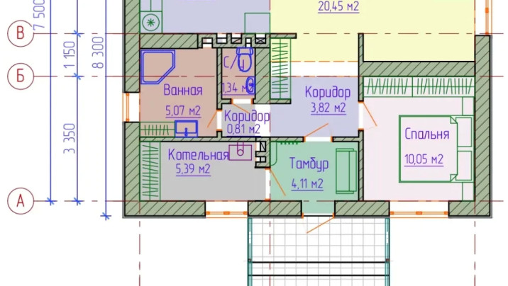 - Под отделку МК-01 Одноэтажный дом 9.8*8.3 метров
