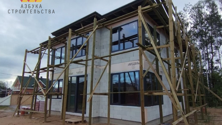В стоимость строительства входит: АР (архитектурный проект) КР (фундамент, стены, крыша, фундамент (геология) , ввод и разводка канализации, ввод (гильзы) водопровода ,электричества, наружные стены из газосиликатного блока (300мм) с утеплением 50 мм, внутренние перегородки (120мм) крыша метало- черепица толщина металла 0,5 мм , бетонные (черновые полы) 100 мм ,межэтажное перекрытие железобетонные, балки перекрытия второго этажа 200 мм с утеплением 200 мм.