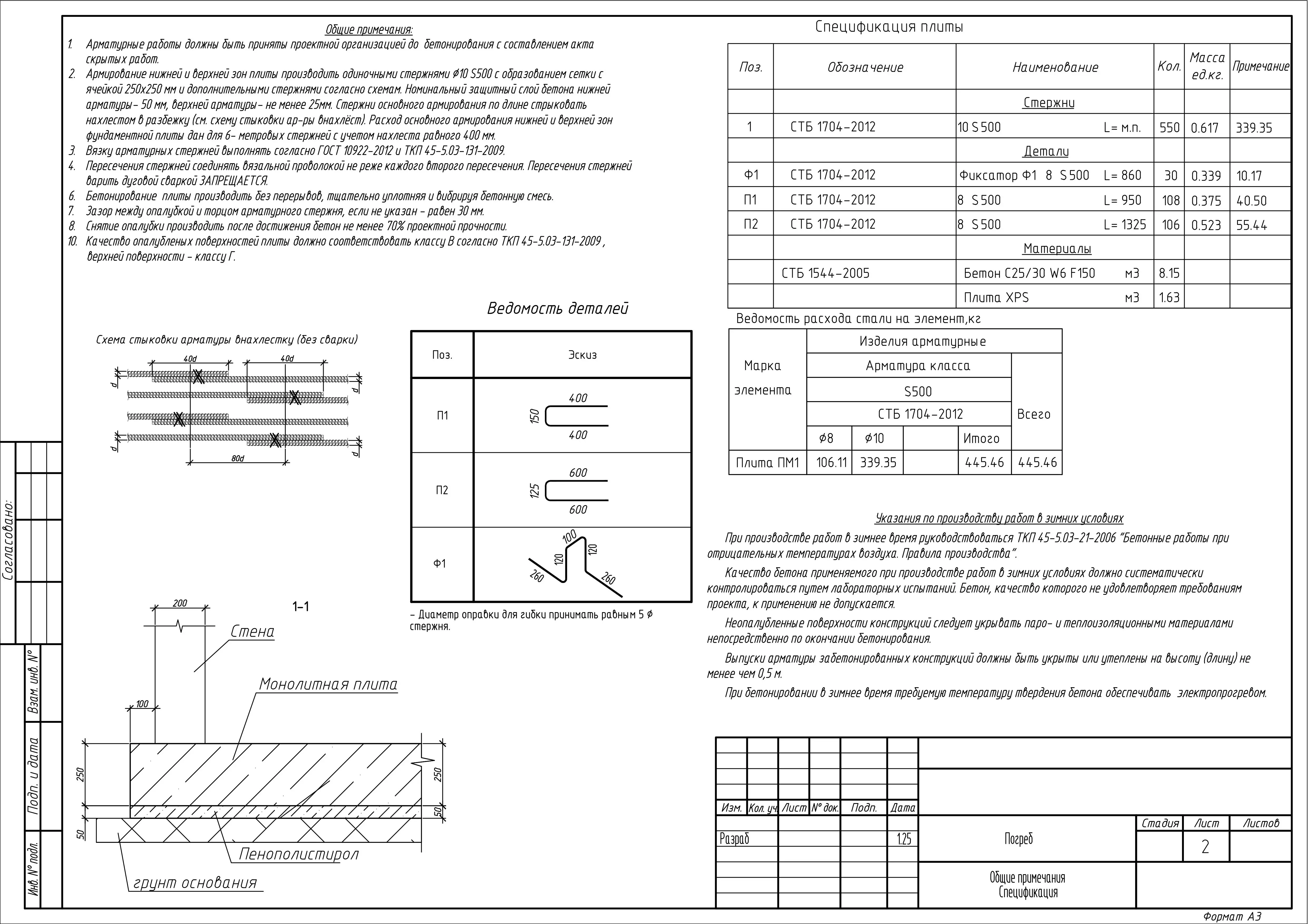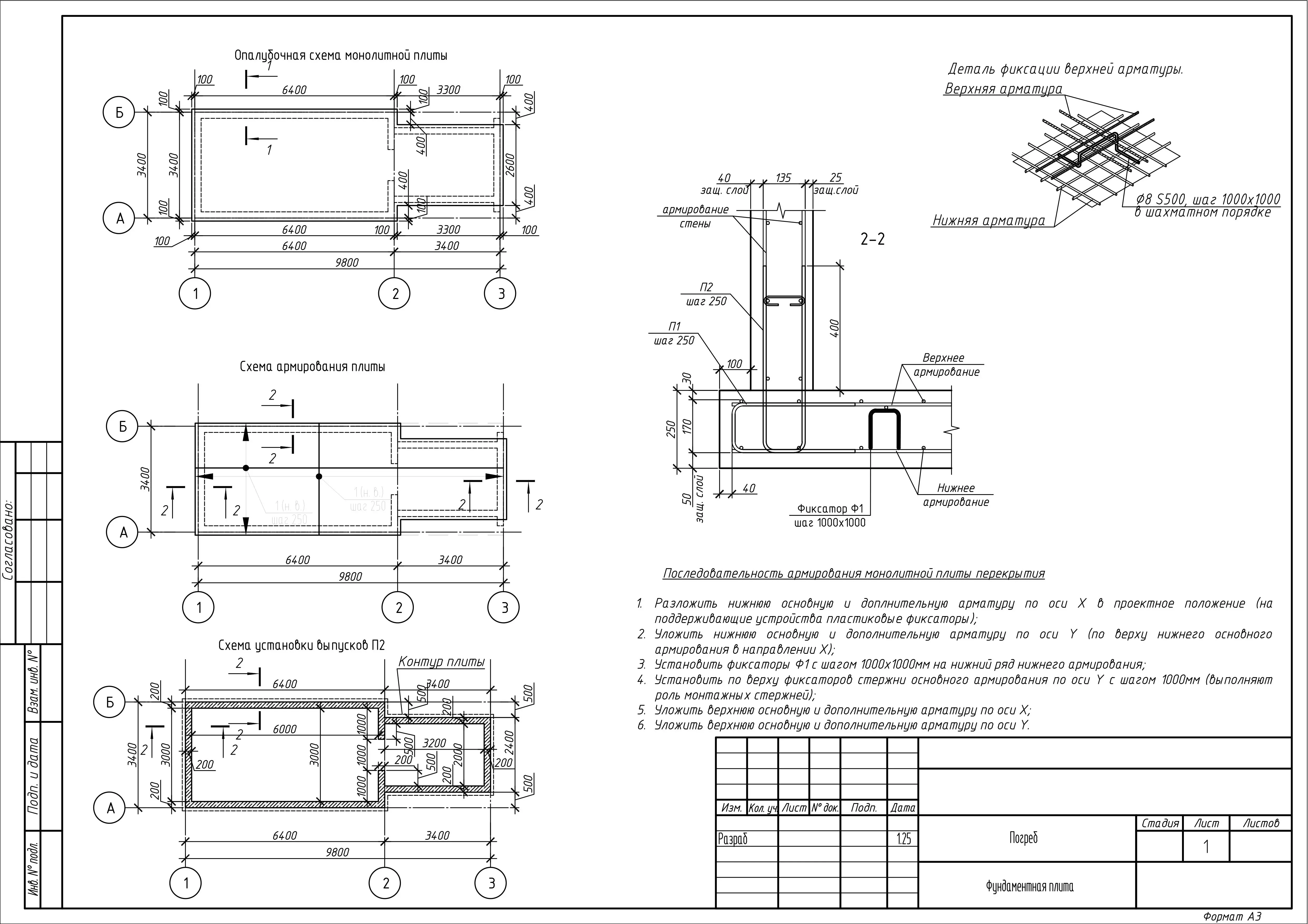 Монолитное перекрытие. Расчет. Проект (рабочие чертежи и спецификации).